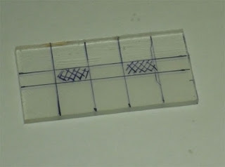 9. Деталь №2 кладём на будущее покровное стекло, размечаем ответные отверстия для шурупов, и место отверстия для корма (8-10 мм) — точно посредине между прямоугольными отверстиями детали №2. Сверлим.