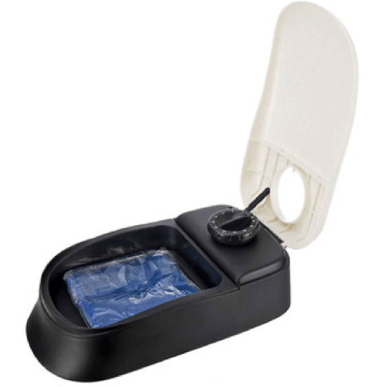 - Самым доступным в плане цены вариантом будет автокормушка для собак без автоматики в виде таймера. Большой контейнер заполняется кормом и устанавливается на миску. По мере поедания корм сам высыпается из контейнера под собственным весом. Если питомец не склонен к перееданию, кормушка станет доступным и удобным выбором.