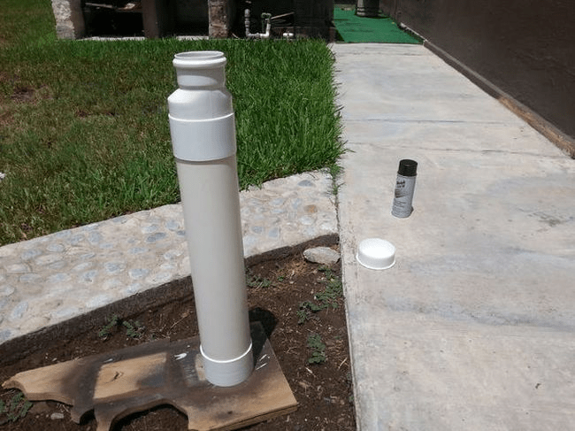 На ПВХ трубу устанавливает муфты с двух сторон. На муфту устанавливает, с одной стороны, переходник. С другой стороны ставит заглушку.