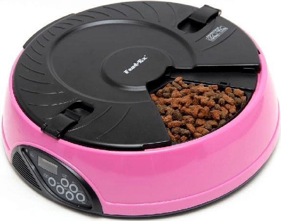 Удобной автоматической кормушкой для котов и собак мелких пород считается модель с отсеками. Круглый контейнер может быть разделен на четыре или шесть отсеков, посему и размер порции получается от среднего до мелкого. Так как сама кормушка по размерам мало отличается от обычной миски, некрупной собаке ее содержимого хватит на сутки. Для небольшого пса хватит и объема кормушки с откидной крышкой, туда помещается порядка половины килограмма корма.