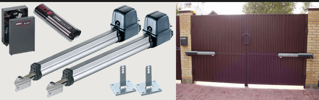 В продаже много готовых комплектов. В их составе, как правило, эл/привод, элементы схемы (датчики, концевые выключатели и тому подобное), пульт. Модификаций много. Цена самых дешевых – около 15 980 рублей. Например, «WINGO» серии 2024KCE, которая способна управлять открыванием створок весом до 400 кг при помощи двигателя на 24 В. При установке покупного оборудования следует руководствоваться рекомендациями производителя.
