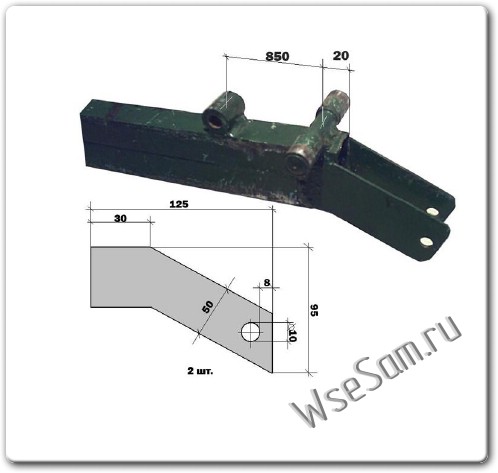 Один ее конец наглухо заваривается небольшой пластинкой, к которой в свою очередь крепится втулка для соединения с задней балкой, к другому концу приваривают направляющие для домкрата и втулки для металлических пальцев-стопоров.