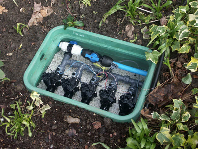 Последний этап — в зависимости от выбранного способа полива в шланги устанавливаются устройства раздачи воды, все соединяется и тестируется.