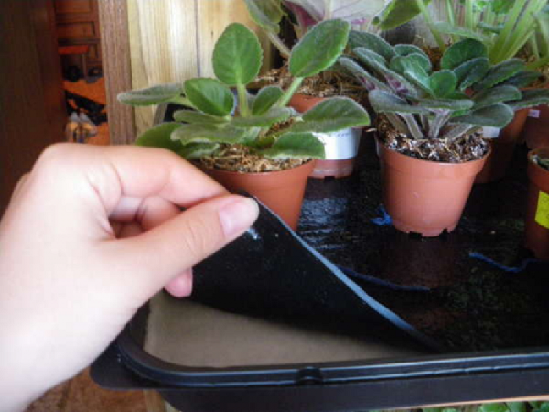 Чтобы насыщать коврик влагой, один его конец погружается в емкость с водой. Можно выбрать и другой способ, для которого потребуются два поддона разных размеров. В больший наливается жидкость, и в него погружается меньший поддон, имеющий отверстия на дне, а сверху застилается мат, на который устанавливаются горшки.