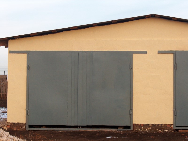 Одним из самых простых и, наверное, самых дешевых вариантов установки гаражных ворот сегодня является заказ обычных металлических створок, которые позволят вам полностью закрыть проем заезда. Для этого достаточно вырезать два сплошных листа с запасом в 5-6 сантиметров. Также для придания жесткости и удобства использования необходимо наварить металлический уголок на створки и получить необходимую прочность двери. Важные особенности реализации простейших ворот следующие: