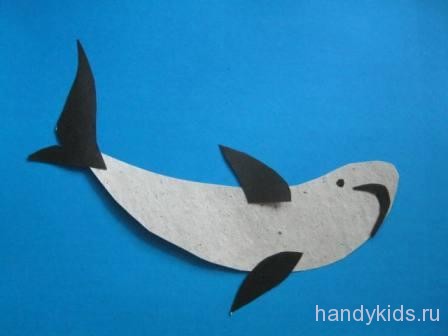 Затем следует вырезать из синей бумаги две детали, которые станут спинным и грудным плавником.