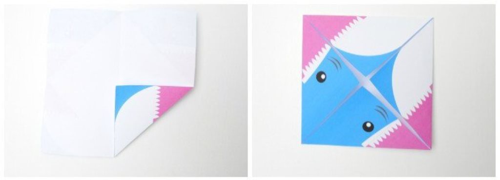 В последнем случае решить вопрос, как из бумаги сделать акулу, будет намного проще. Дело в том, что рыба в итоге получится больших размеров, однако складывать ее будет легче. Чтобы фигурка была максимально реалистичной, следует с особой тщательностью подбирать цвет бумаги.
