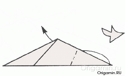 После этого в левой части уголка делаем надрез. Тянем угол, оставляя один слой бумаги и закрываем фигурку.