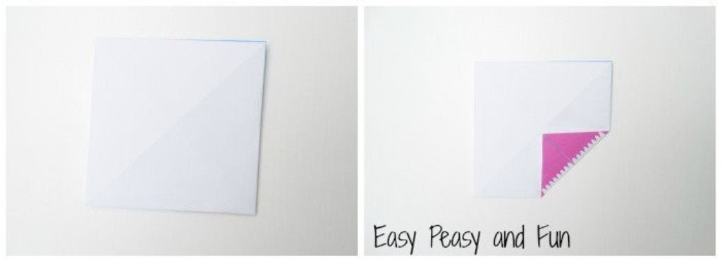 Переходим к практической части решения вопроса, как из бумаги сделать акулу. Лучше всего нам подойдет квадратный лист бумаги, сторона которого равна 15 см. Если вы новичок в деле оригами, можете использовать заготовку большего размера.
