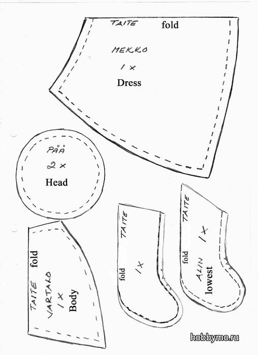 При распечатывании выкройки стоит учитывать масштаб, так как от этого будет зависеть размер готовой куклы.