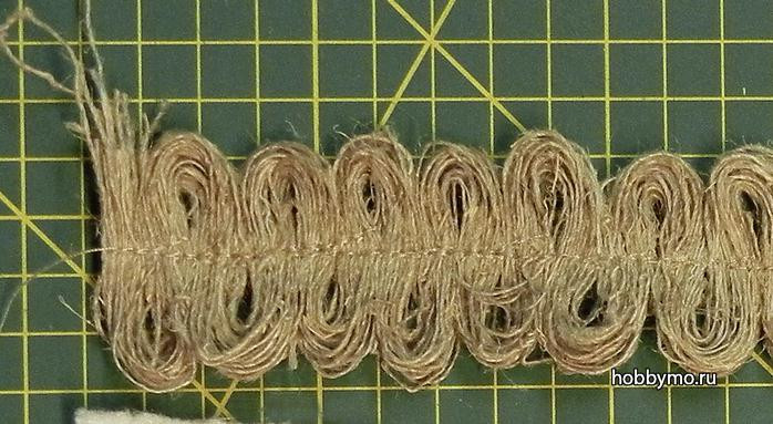 далее кружево из х/б ткани прошиваем по краю ,оставляя концы нити сводные,