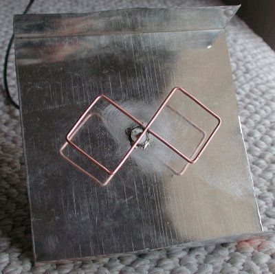 После постройки «двойную восьмёрку» желательно покрыть лаком, чтобы избежать окисления/коррозии. О том, как важно выдержать расстояние в 15 мм между отражателем и медным проводом, свидетельствуют две приведённые ниже фотографии