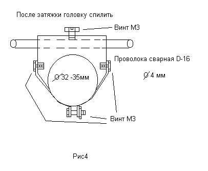 На рис4 показан узел крепления всех пассивных вибраторов антенны и рефлектора. После надежного закрепления винтом М3 вибратора в теле изолятора, необходимо головку винта М3 спилить Материал для изготовления рефлектора и пассивных вибраторов антенны может любой, чем указан на рисунке, но диаметр при этом должен оставаться какой указан — 4 мм.