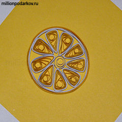 - Что-бы лимон оказался устойчивым от него отрезается боковой кусочек. Из отрезанного куска вырезают ушки тонкие, которые должны иметь форму круга.