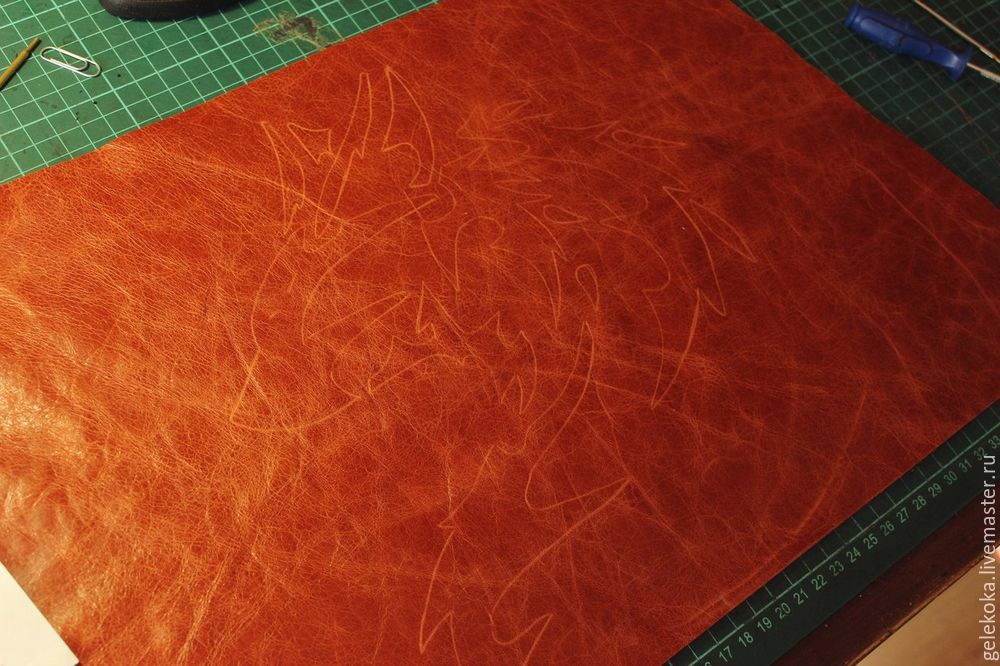 Для декора вырезаем из кожи детали в виде роз. Если нужно, используем трафареты. Узоры могут быть другие. Все зависит от вашей фантазии.