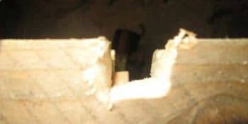 Когда древесина выбрана и обработана, в ее передней части нужно сделать выемку для размещения лука арбалета. Делать выемку можно любым инструментом от пилки по металлу до обычного ножа.