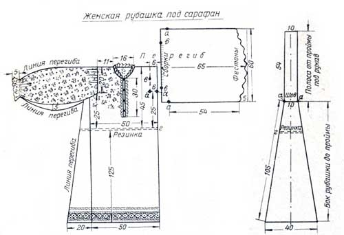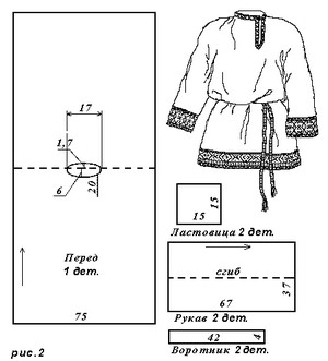 На рисунке показана еще одна выкройка рубахи.