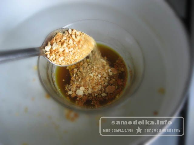 1. Растопите пчелиный воск на водяной бане. Я пользуюсь кремоваркой. Если у вас ее нет, не стоит расстраиваться и откладывать мастер-класс до «лучших времен». Вы можете соорудить у себя на кухне водяную баню. Для этого, небольшую эмалированную кружку или миску с воском, поставьте в кастрюльку с водой. Совет: воск расплавится быстрее, если его натереть на терке или постараться максимально измельчить.