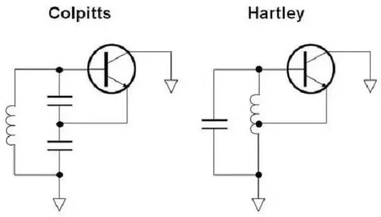 Собранные по схеме «емкостной трехточки» на биполярном и полевом транзисторах, показаны на рис. 12.4 и 12.5. Принципиально по своим характеристикам схемы «индуктивной» и «емкостной» трехточек не отличаются, однако в схеме «емкостной трехточки» не нужно делать лишний вывод у катушки индуктивности.