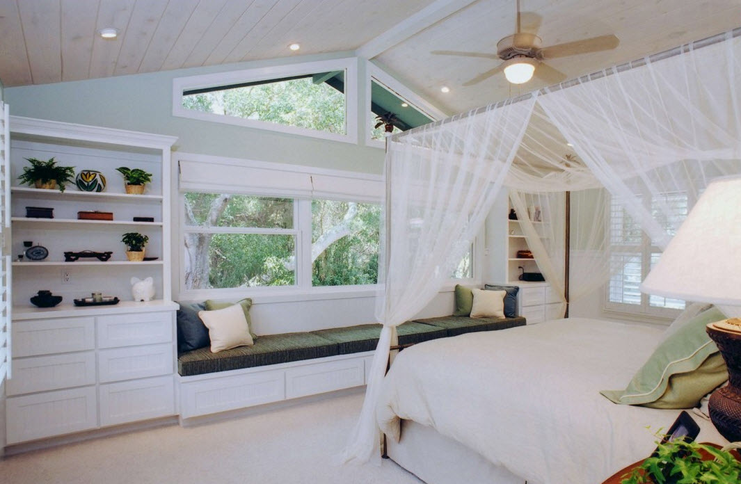 С помощью балдахина над кроватью в спальне можно создать более уютную и интимную атмосферу.