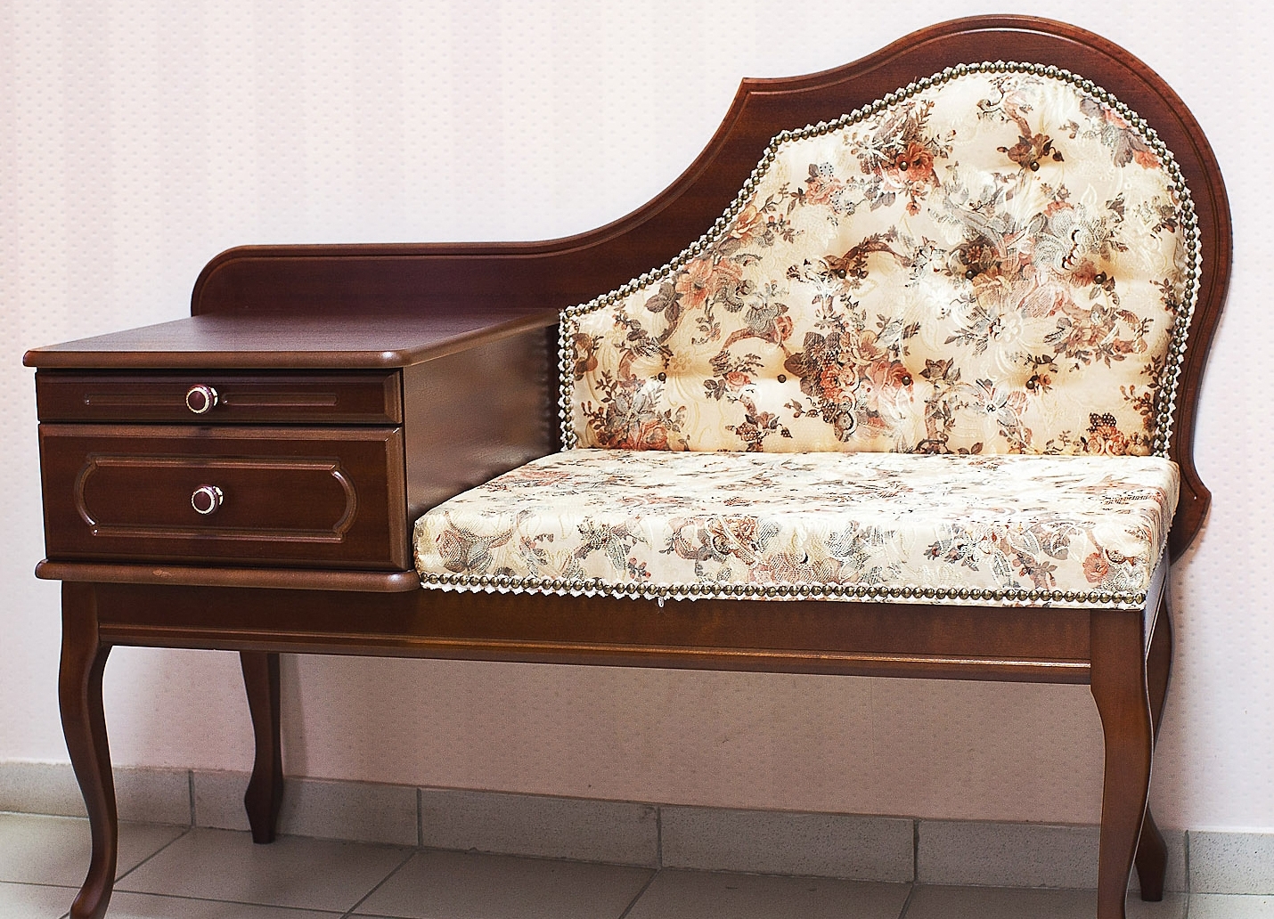 Больше подойдет под интерьер в стиле барокко или ампир. Изделие будет иметь кованые, витые основания. Чаще у этих экземпляров нет встроенных полочек, ящиков и шкафчиков. Выполненный в данном стиле пуф будет лучше всего смотреться в прихожей.