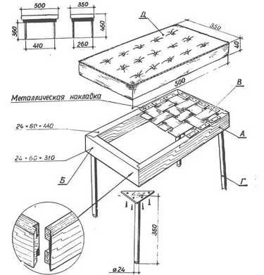 - Ножки крепят к готовой столешнице.