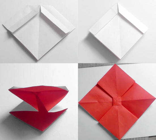 Располагаем в виде ромба и загибаем верхний треугольник вниз.