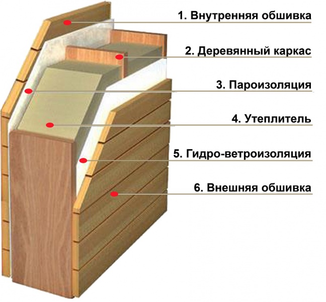 Важно! В каркасной бане нужно особое внимание уделить влагоизоляции стен, потому что минераловатные утеплители очень чувствительны к пару и теряют свои свойства при малейшем проникновении воды.