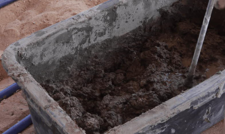 Для кладки использовался цементный раствор, замешанный в пропорции 3:1 (соотношение песка к цементу).