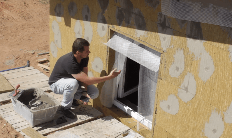 Чтобы конструкция получилась устойчивой и надежной рекомендуется сделать армирование первого ряда, нижних швов оконных проемов, а также опорные поверхности дверных и оконных перемычек.
