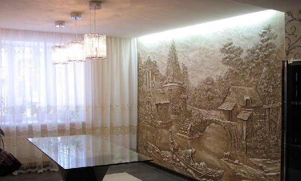 С недавних времен барельеф стал считаться оригинальным крашением жилища, его все чаще можно увидеть в интерьерах.