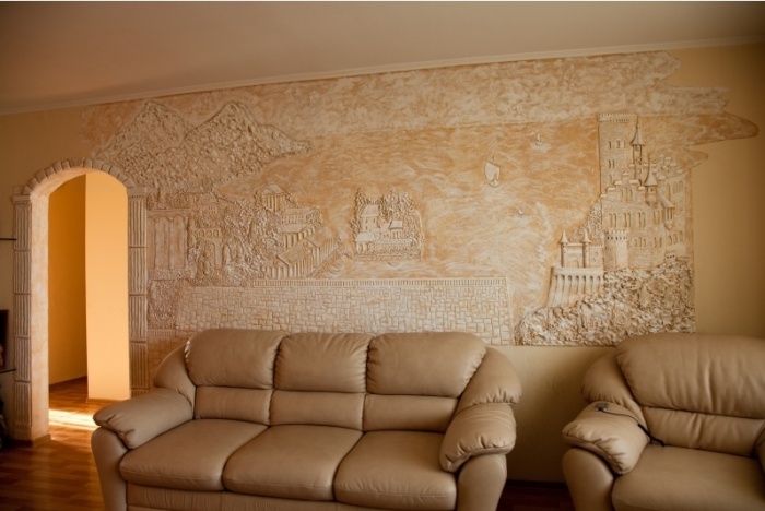 - Сначала нужно продумать интерьер помещения, где будет находиться барельеф. Объемные изображения можно сделать в любой комнате, однако чаще всего их можно увидеть в гостиных и спальнях.