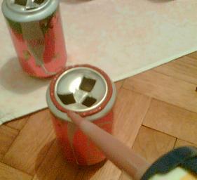 Для создания внутренней турбулентности необходимо нарезать верхнюю часть банки на полоски и загнуть внутрь. В результате этого воздух, ударяясь о стенки пивных банок, будет быстрее нагреваться.