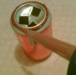 - Для того, чтобы из самодельной батарейки уголь не высыпался, растопите воск в консервной банке и залейте верхнюю часть батарейки.