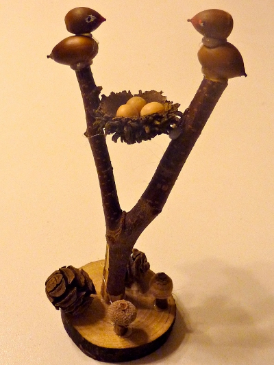 из желудей и спила дерева.