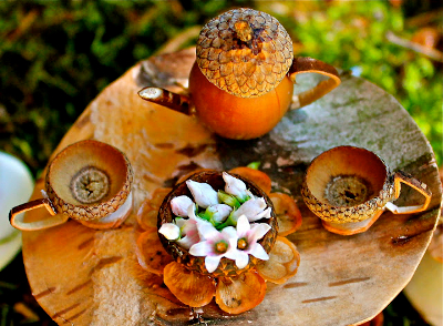 Чайный сервиз из шляпок желудей.