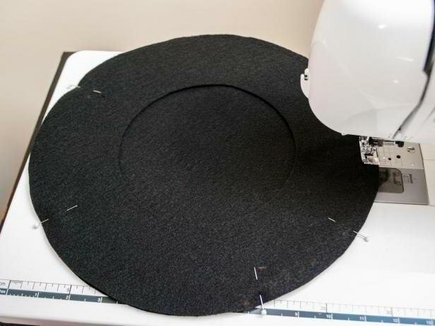 Складываем оба наших круга лицом к лицу и по окружности скалываем булавками.