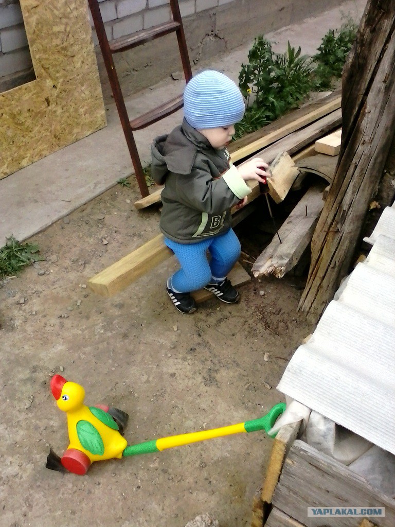 Был перерыв на стройке. Дети — в лагерях, а мы с женой занимались подбором и доставкой стройматериала. Для строительства было специально куплено: электрорубанок (950 руб.), электролобзик (630 руб.), пила (100 руб.), гвозди разные (примерно на 300 руб.), молоток (120 руб.), рулетка (75 руб.). В отсутвии сына, мы с женой соорудили необходимый в дальнейшем столярный верстак (как это сделать описывать не буду, но уже сейчас понятно, что без него не обойтись — весь стройматериал надо строгать, выпиливать, выдалбливать…).