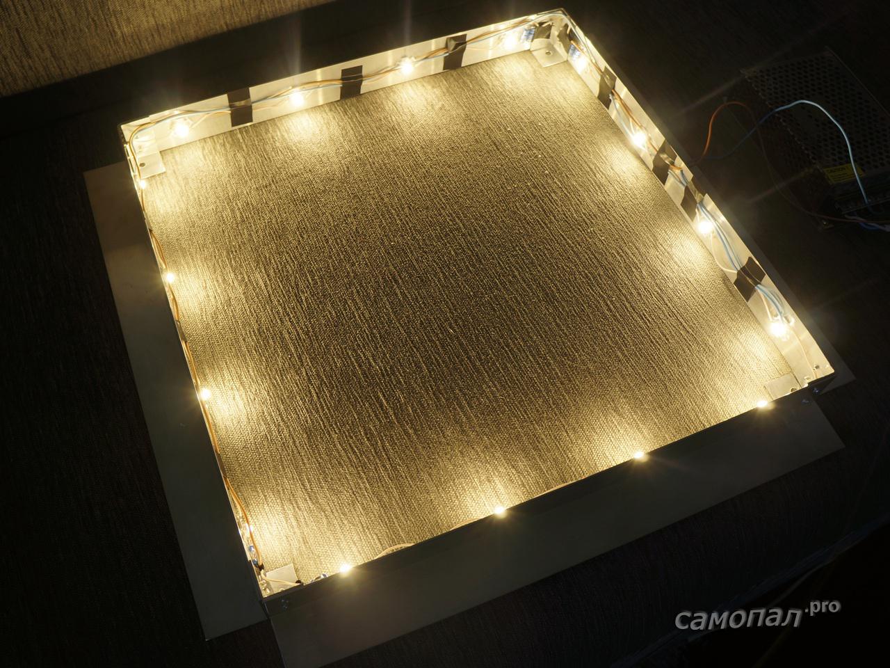 По всему периметру ваших вставок прикрепите ленту со светодиодами
