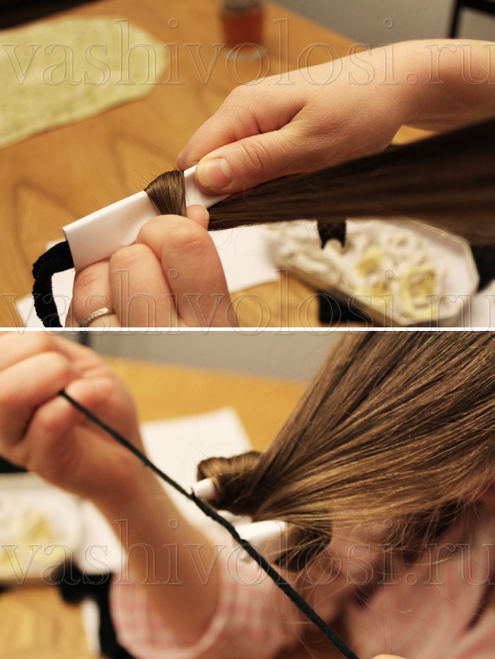 - Приложите кончик пряди к липучке и закрутите ее вниз. Никакой дополнительной фиксации не требуется.