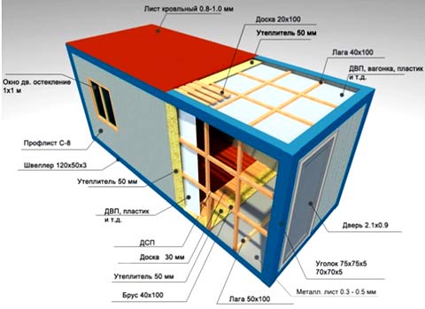 Благодаря этому можно учесть все детали и произвести предварительный подсчет стоимости работ. Чертеж позволяет быстро и правильно собрать каркас и стены своими руками, превратив вагончик в жилую площадь. Такие бытовки, где каркас имеет дополнительные ребра жесткости можно использовать в качестве полноценных домов, дополнительно утеплив стены.