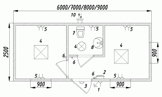 Если нет возможности подключить компьютерные технологии, когда создается проект бытовки, можно сделать чертеж. Основной чертеж (вид сверху) должен отображать следующие показатели: