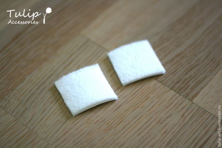 На двусторонний скотч или клей, необходимо приклеить прямоугольники синтепона и обрезать лишнее по краям.