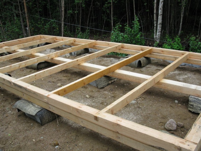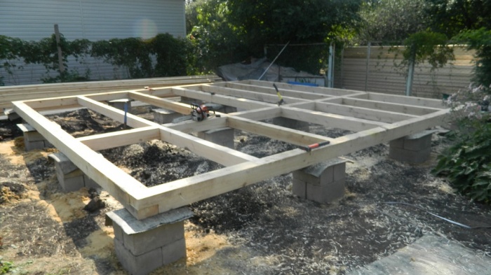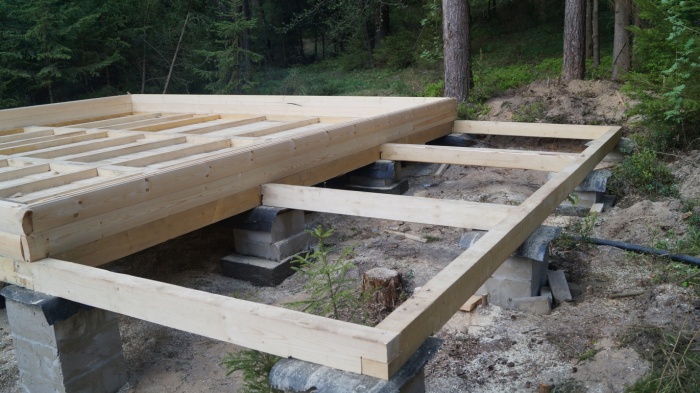 - Сооружаем ростверк из деревянного бруса.