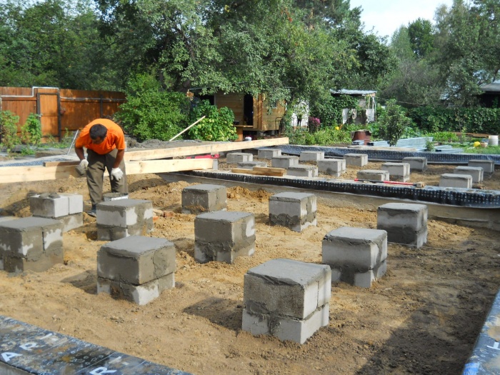 Каркасный домик своими руками: # 1 (Блочный столбчатый фундамент)