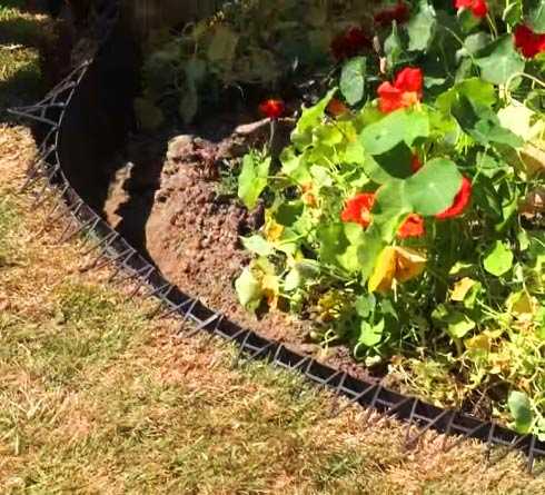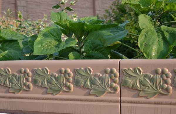 Эстетика заключается в том, что круги, овалы и прямоугольники земли, засаженной цветами и овощами, в обрамлении пластика или любого другого материала смотрятся очень изящно. Клумбы и цветники хорошо держат плодородный грунт, долгое время сохраняют свои формы.