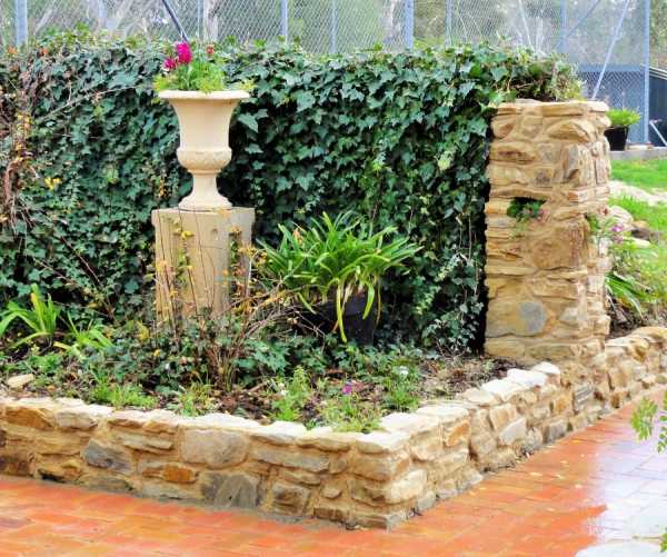 Особой прочностью шифер не обладает, во время нагрева от лучей солнца может выделять вредные вещества. Ограждение из кирпича можно считать стационарным. Времени на возведение его уходит много, зато задача облагораживания может быть решена навсегда. Это очень практичный вариант для сада.