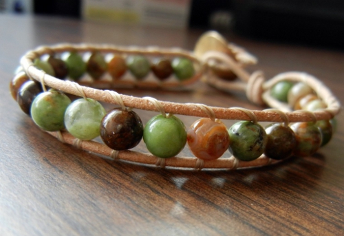 Сегодня продаётся много разных видов браслетов из кожи. Есть модели мужские, женские, унисекс. Некоторые украшения застёгиваются на кнопку, другие затягиваются на шнурок. В качестве отделки используются цветные бусины, бисер, подбираются кусочки разной по качеству и цвету кожи. Отделочные элементы могут вплетаться в браслет или крепиться после.