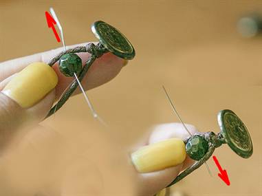 нить НАД и обратно ПОД правым концом, опять через бусину, далее НАД