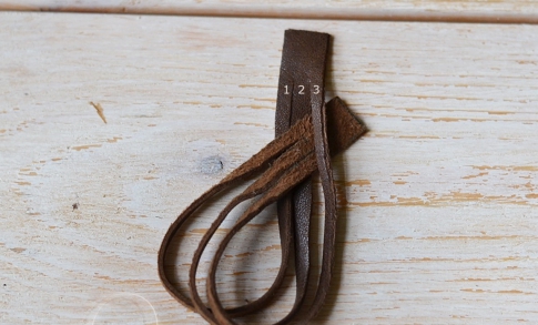 - Если кожа грубая, большой толщины, плетение из трех полосок будет наилучшим вариантом. Для кожи тоньше, можно нарезать пять или шесть полосок.